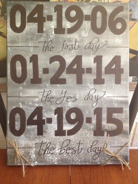 I had posted a few days ago about putting the wrong dates on a sign (got our anniversary/wedding month wrong. D'oh). Here's the finished product, all fixed! It's a 12x15 canvas I painted with silver/white/black paint, then used a piece of burlap to...