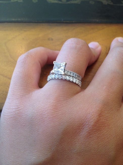 Yay my dress came in and I finally got to try it on. Best part was IT WAS TOO BIG! I was so nervous it was going to be tight. Also we ordered our wedding bands. Unfortunately they didn't have the one my FH wanted in stock, so no picture. But my set...