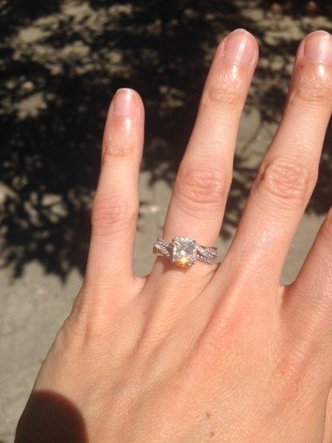 I got such a positive response to a picture I posted of my ring and some wanted to see a close up of it so they could see the details of it. So I thought I would post two pics minutes after he proposed. Pardon the bad paint job on my nails but had I...