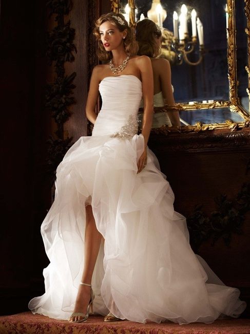 Ok Gals! I need your help. I have decided that I will be needing a reception dress. My ceremony dress is gorgeous, but I can barely move in it other then walking slowly. Please help me decide which one to wear: First one: I really love this dress...