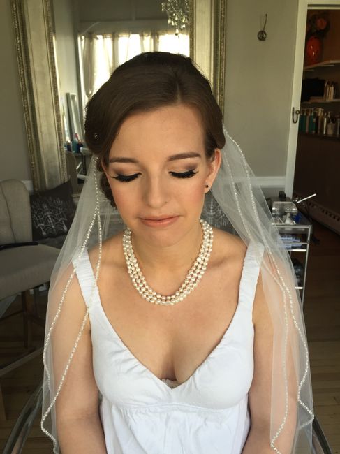 What necklace are you wearing and what shape is the neckline of your dress? Looking for ideas because I just changed my dress from satin strapless to lace with cap sleeves but would love to see everyone's regardless of neckline / style.