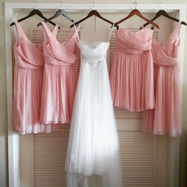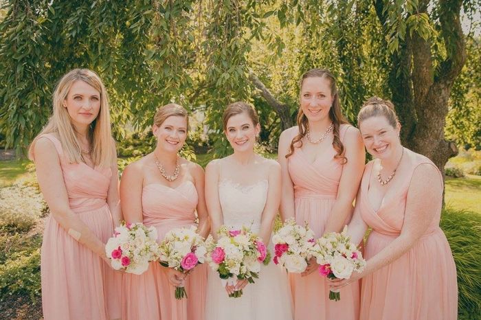 So I have several different bridesmaids and they are all different sizes. Two are plus sized (size 14-16 gorgeous), one is tiny (size 0 petite) and the other three are average human size (size 6 maybe). These ladies are busty so strapless is not...