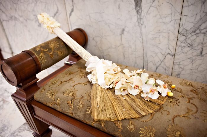 So I finally completed my wedding broom! (actually, my FH's coworker is really the one who made it, I just bought the materials and told her what I wanted). I am so in love with it! This is one of the traditions that FH really wanted to incorporate...