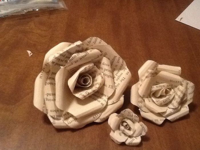 So, I am doing these paper flowers for part of the bouquets and buttonholes. They are actually pages out of a Harry Potter book - one of my favourite books - and it's just something I wanted to do to incorporate my love of books and the fact that I'm...