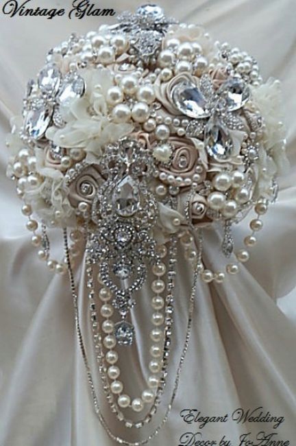 I told FH today while we were thrift store shopping that I was looking for brooches, pearl necklaces and fancy earrings for my bouquet. He wasn't getting what I was talking about so I showed him my inspiration which he thought was awesome :-) so...
