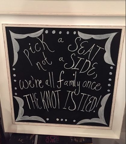 Ok I want a sign for the ceremony telling people not to sit on the traditional sides, but wherever they want. Which wording do you like best? The actual sign will be a cute chalkboard sign. These pictures are just for wording. 1.