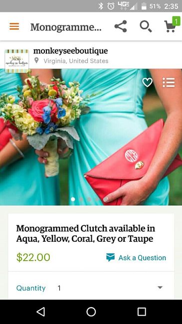 So I want your opinion. I'm thinking of getting clutches for my bridesmaids. If it was you would you prefer no monogram, name, full initials or first initial. (They will be grey)