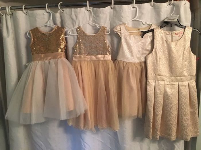 I wanted to stick to the traditional white but now I've been thinking about getting them a colored dress, which they could wear again. Our colors are navy and gold. Not sure which color I should look at getting. So should I stick with the white, or...