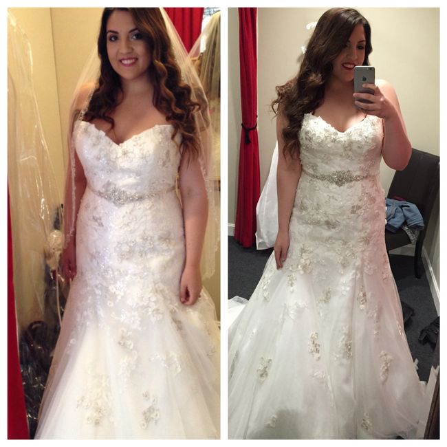 Ladies, I need help! Honest thoughts please! Take in to account that the dress is not altered to my body, just held on by clips! Thank you!!