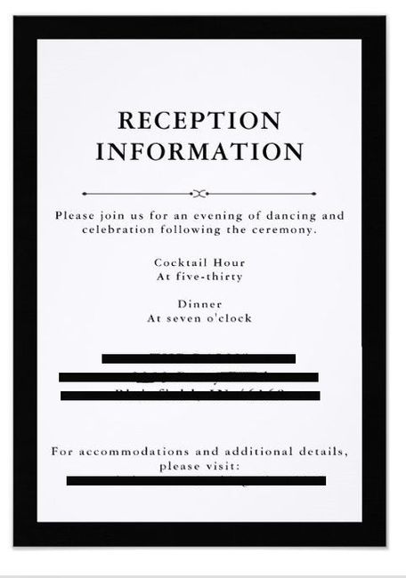 My reception is at a different location than my ceremony. We will open up the bar immediately following the ceremony for cocktail hour. Did you list separate cocktail hour/dinner time(s) on your reception card?