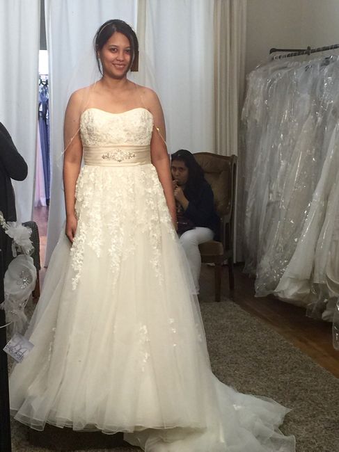 I haven't been on here in a few days, so forgive me if there is already a thread, but I scrolled through a few pages and didn't see one. I had some doubts about my wedding dress mainly because I have VERY broad shoulders but I walked into a David's...