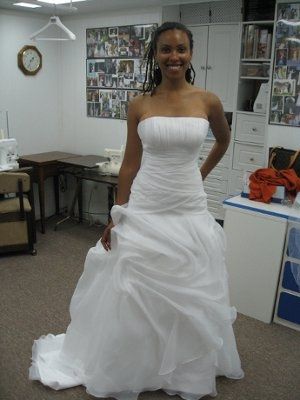So I was about to go to bed and I was flipping through some pics for the wedding when I came across a few pics from my last fitting. There is a lot of bunching & gathering there and my first thought was "Oh well, it fits pretty well regardless." Then...