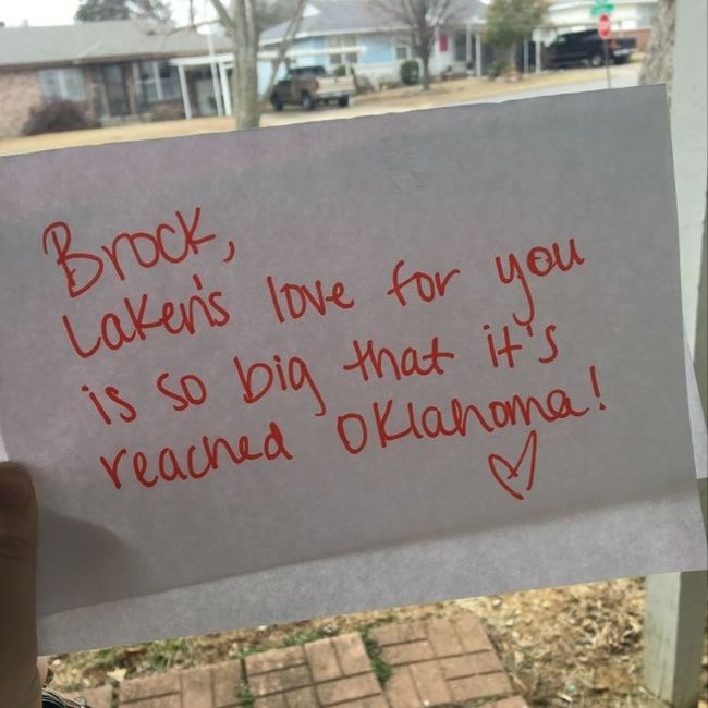 Hello everyone! I am trying to put together a wedding gift for my fiancé but need some help. I'm trying to gather pictures to put in an album. If anyone from different states could make a sign that says "Brock, Laken's love for you is so big it has...