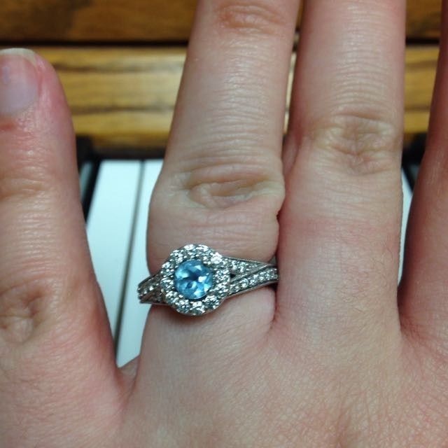 Hi ladies. I know I have different taste. My ring is a cushion cut 1ct aquamarine with 1/4c dimonds set in 14 carat gold. Love to see everyone's beautiful rings