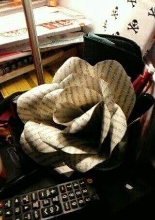After seeing a story about one couple's amazing Harry Potter wedding, FH and I decided to add some nerdiness to our own. Part of this is making flowers out of pages from the books. Here's my first go at it.
