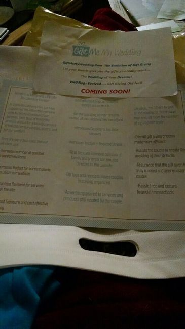 Just got around to going through my bag full of flyers from the bridal expo i attended two weeks ago and look at the doozy i found..... Figured I'd share the wtf factor with everyone on here. Worse than having a honeyfund imo.