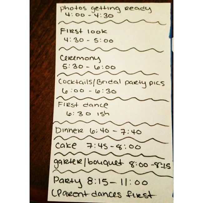 Okay everyone this is the wedding day timeline that I could come up with. Now before you say anything I only have my photographer for two and a half hours so if it seems a little oddly timed that is the reason why. This is the best that I personally...
