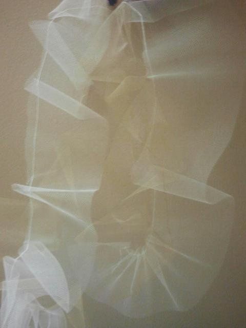 Please help me decide. I've only got these two started and I am trying to replicate this inspiration photo. Should I continue to just ruffle one side, or should I add ruffles to both sides of the tulle? I can't really tell from the inspiration photo...