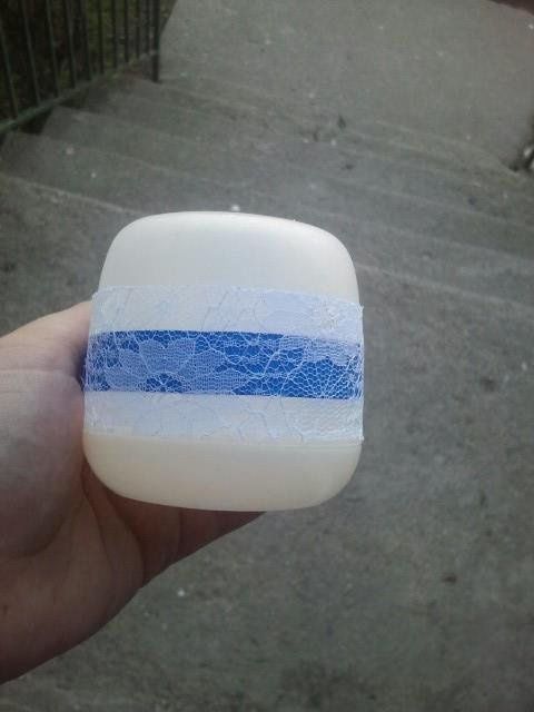 I got a flower girl basket on clearance forever ago. It had bows on each end of the handles in chocolate brown and tiffany blue (not the blue I'm using) I ripped them off and had just the plain basket. Last night I finally got around to decorating it...