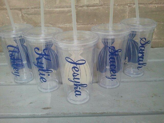 I desperately wanted the personalized tumblers for my girls, but couldn't justify $20 a tumbler shipping. SO I found someone who could create the vinyl stick ons for me for a cost of $50 and picked up some tumblers from the $ store. Total cost of $55...