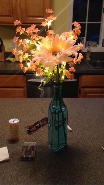 This is another centerpiece trial I am working on, but don't know what to do about the battery pack! Any recommendations? Or does anyone know of a battery-less string of lights? Any help would be much appreciated
