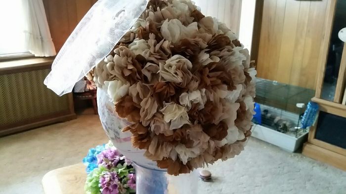For some stupid reason, I got it in my head that I needed one of these. I have cards for guests to write well wishes on and nothing to put them in. FH and I made tons of annoying paper flowers and I am on my second pinata. I screwed up the first...
