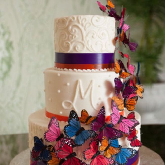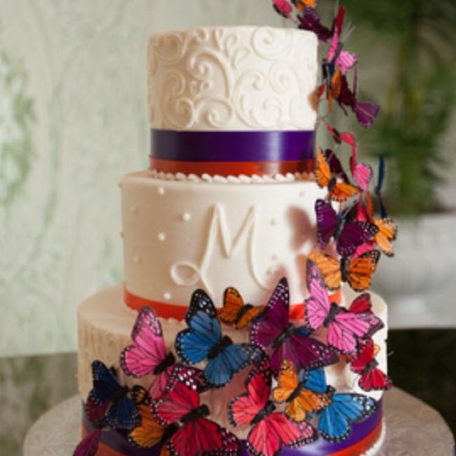 Hi guys! Just wondering what everyone was thinking about doing for their cake? I am thinking somthing simple, like pictured! Anyone doing anything unique/different! I have my cake tasting next Friday and am looking for unique inspiration!