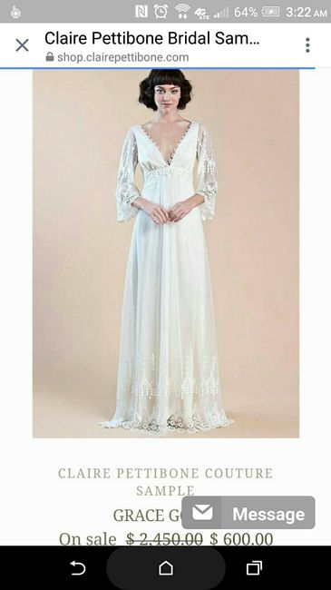 I know that I coveted Claire Pettibone dresses but they were way out of my price range....right now there is a sample sale on her website and there are a bunch of gowns under $1000, so I hope this is okay to post, but I wanted to let people know in...