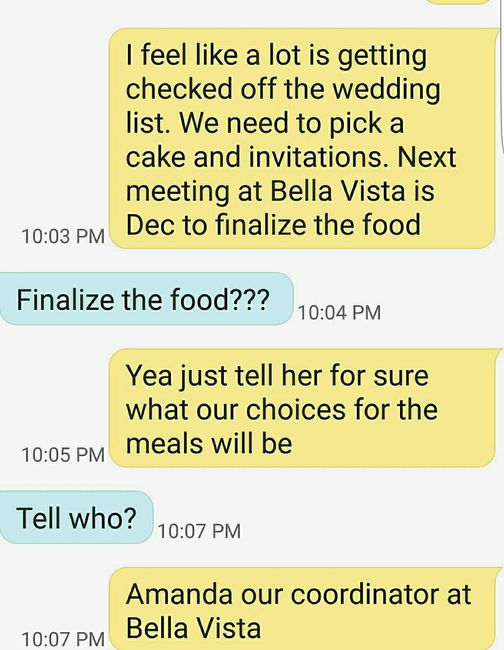 3476 days agoTo my dress fitting appt? The lady altering my dress said not to bring everyone (only 5 people). So now I have to narrow it down to 3 people. I want my grandma there since she wasn't able to come dress shopping with me. I want my mom there. I really...