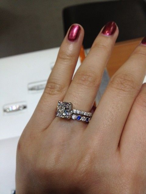 Does anyone have a diamond engagement ring but then a wedding band with other types of stones? Would that look good? I really want a custom made wedding band with both diamonds and emeralds, alternating. just wondering if anyone has anything similar...