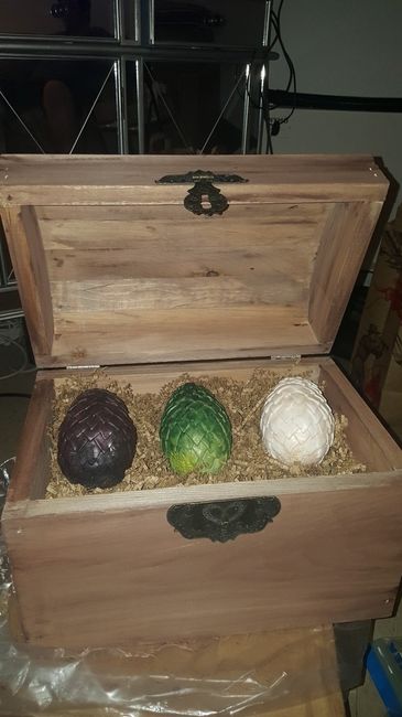 I just wanted to shamelessly pat myself on the back. I made dragon egg soaps for a friend's birthday. I jazzed up an unfinished wood box with some paint and a latch and here it is. I'm going to add her name inside the box. I can't share on FB so I...