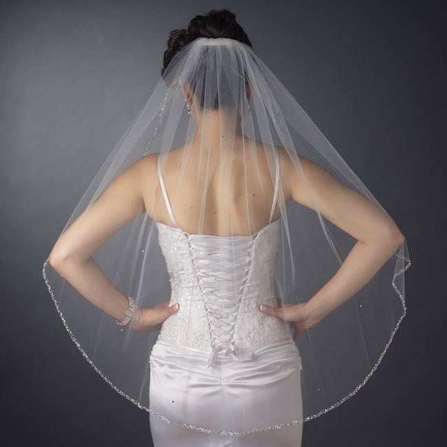 HI, I need advice. I bought this Ashley Justin 10495 dress. It has heavy but very small beading. What veil should I wear with it?