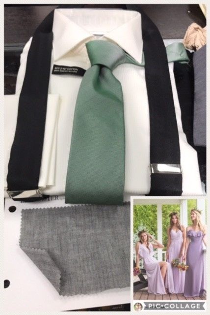 Hi all! So we just went looking for the men's outfits today and I quickly found out that it is more complicated than I imagined! Lots of different pieces to think out. This is our plan for now. We are having a beach wedding so the gray swatch is...