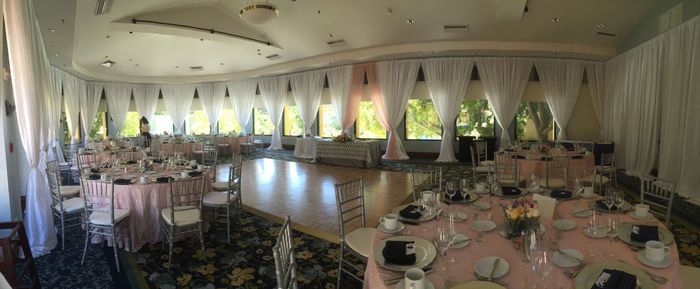 Ladies I need your help, I'm getting married September 30th of next year and I am stressing!! What type of centerpieces would look good on these round tables?? My wedding colors are blush, gray, and navy blue. I plan for the linens to be navy blue. I...
