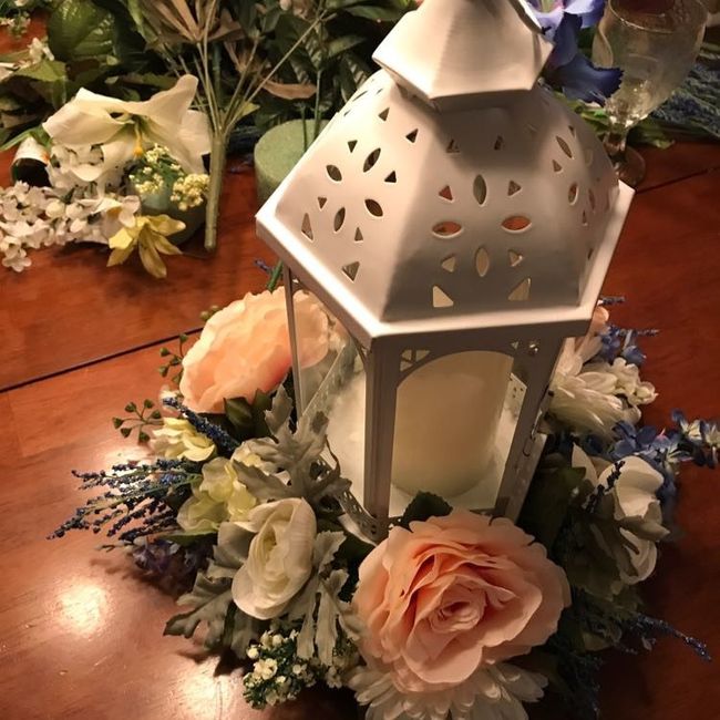 So my fabulous FMIL so very graciously offered to make our centerpieces and I just need to share this gorgeousness that she created while messing around with the flowers last night! I'm obsessed with how they turned out!