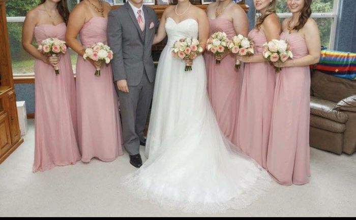My maids are really easy going. They are all very fair skinned and they don't really tan. My wedding colors are pinks and grays. I like the blush color but the bridesmaids literally look naked in them. I know dresses look a little different in...