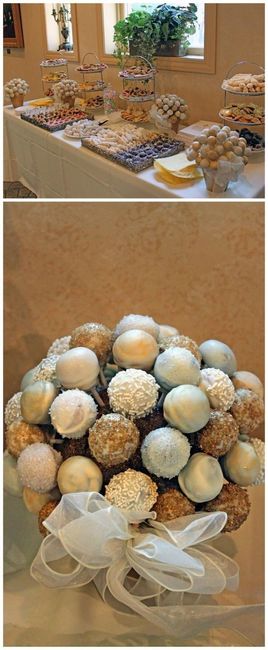 So we decided to do cake pops and only have a cake to cut for our parents to watch. I am trying to figure out a way to have the cake pops look cute on the cake table. Has anyone else done this and do you have a picture of how it was displayed
