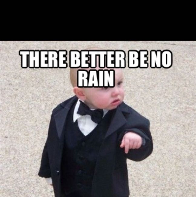 We live in the Atlanta area and our wedding is next Friday! I'm so worried about the weather and I just need to vent. Our ceremony is outside and our reception inside. As of now there is a 40% chance of rain with occasional showers in the afternoon....