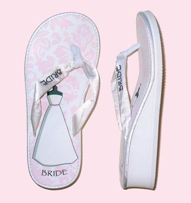 I have my wedding shoes already which have a 3 1/2" heel, I'm planning on putting flipflops on half way through so my feet don't end up killing me. Anyone know of a good site that sells wedding flipflops/slippers?