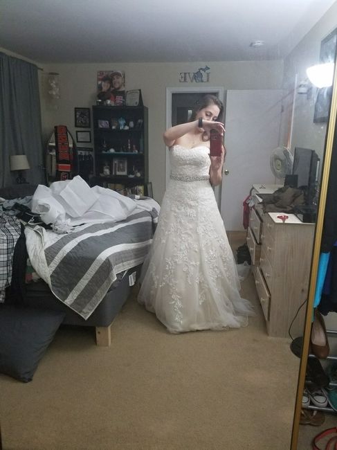 I am picking my gown up from the seamstress soon and fought through a wave of dress regret. Back to loving the uniqueness of my wedding dress. I hope it fits! I LOVE seeing everyone's gowns, so drop a pic! It always amazes me how different they are....
