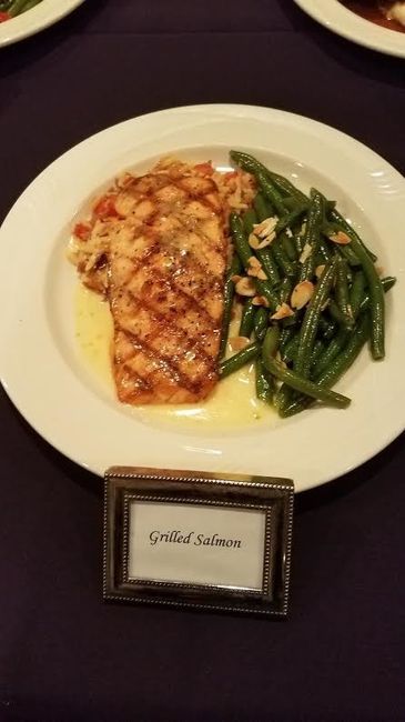 FH and I had our food tasting last night and OMG. The food was amazing! We got to bring 4 people with - MOH, my dad, FMIL, and FBIL. We sampled the different wines they can serve with dinner, two salad (Chef Tossed Salad & Fall/Winter Seasonal...