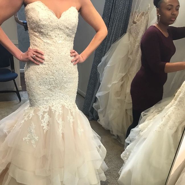 Several alterations to make, but it's in my possession! - I definitely need cups, and top taken in a little bit - Straps need shortened - Removing the straps and adding eyelet hooks, so I can add them during the reception but have strapless for...