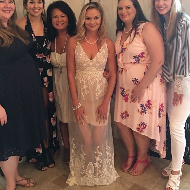 Hi, girls! I don't know anything about my shower other than that it's lace and pearls themed. (My hostesses are amazing! I'm so very lucky!) I am looking for an ivory or white, lace dress. It'll be super hot (TX), and a lot of what I've found are...
