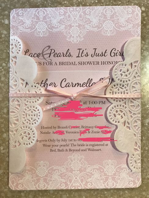 Check out the shower invitations my MOH designed, printed, and put together. My dress is lace, and our sorority (back in the day) jewel was a pearl. I love how they turned out, and feel super fortunate to have some great ladies in my life! I was very...