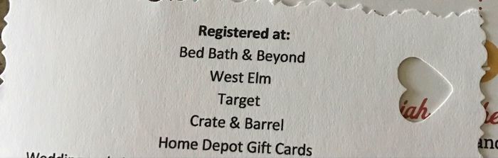 Just got invited to a bridal shower and the invitation says "bride is accepting monetary donations." I almost died when I read it. Ughhhh so much gross on one piece of paper. Ugh just put your bank account number on the invitation