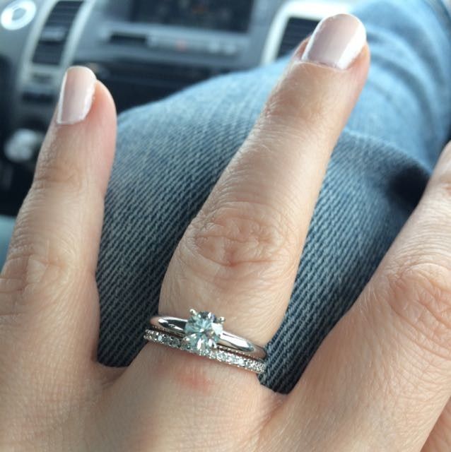 We started shopping for our bands yesterday (yay!!) and just wanted some opinions... my e ring is platinum but I was thinking of going with a white gold band... the platinum is SO much more expensive! Is that weird to do? I'd love to see all of your...