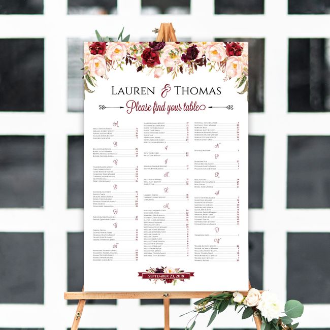 So the business I purchased our table numbers, guest book sign, social media sign and cards and gifts sign from has a matching seating chart. But instead of table by table, it's alphabetical. Has anyone ever seen a seating chart like this? I'm...