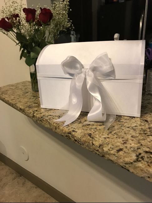 So I just got my card box and it’s super plain! My awesome venue gave us a gift card to their website so I got this for free. I have a Cricut so I can cut vinyl and stuff but I have no idea what I want to do with it! It has a satin finish. The...
