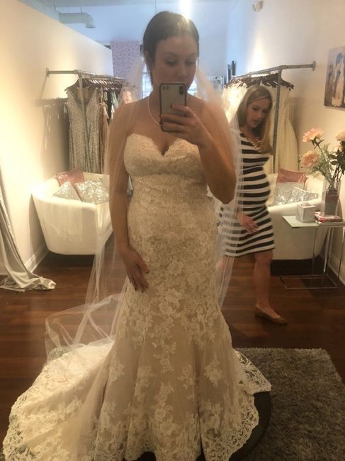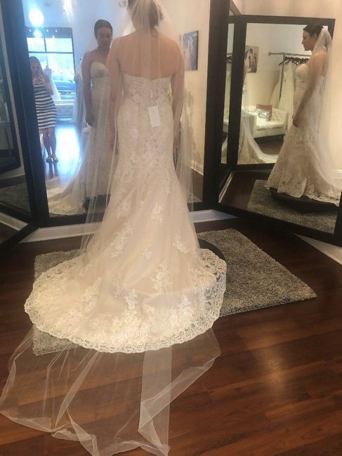 Veil 1 Veil 1Veil 2 Veil 3 Veil 3 Hey everyone, this seems to be a common question on here and I'm needing some advice. My dress is ivory lace with a champagne underlay. But, other than my obvious weight gain in between try ons, every picture seems...