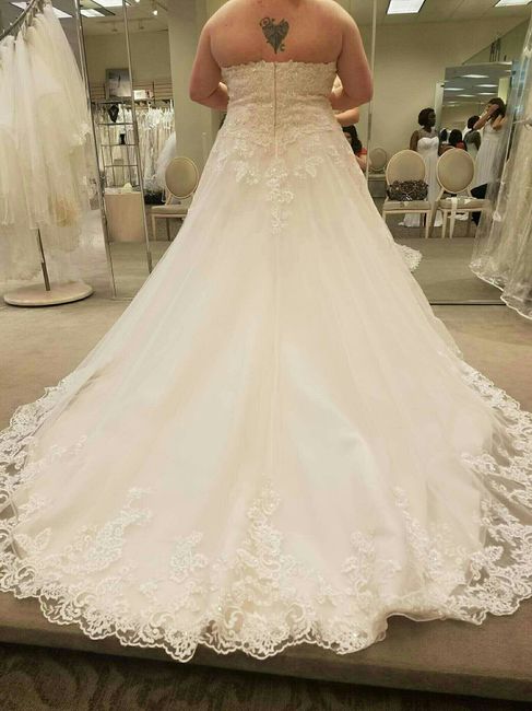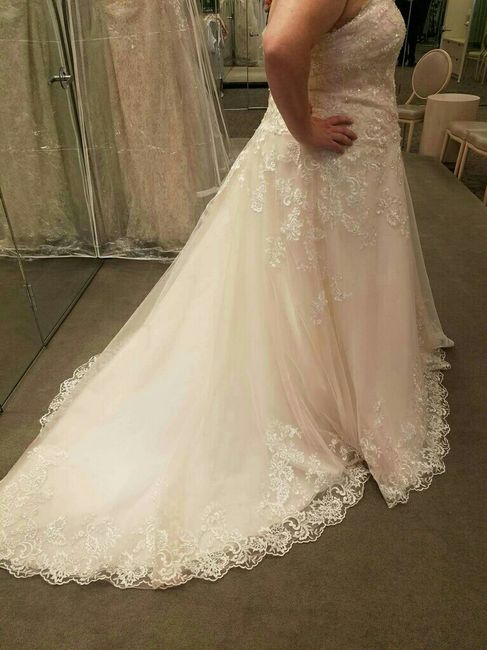 I think I found my dress! My only worry is that I am having a small wedding (22 people including FH and I) and the dress is large and dramatic. Please ignore the odd expression on my face! The picture doesn't quite show it but the dress is a blush...